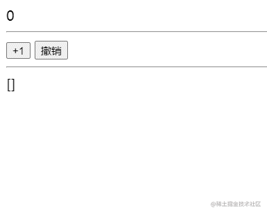 | new Vue({ data() { return { n: 0, history: [], isUndo: false, }; }, methods: { add() { this.n += 1; }, undo() { const last = this.history.pop(); this.isUndo = true; this.n = last.from; this.$nextTick(() => { this.isUndo = false; }, 0); }, }, watch: { n(newN, oldN) { if (!this.isUndo) this.history.push({ from: oldN, to: newN }); }, }, template: `<div> {{n}} <hr> <button @click='add'>+1</button> <button @click='undo'>撤销</button> <hr> {{history}} </div>`, }).$mount("#app");
